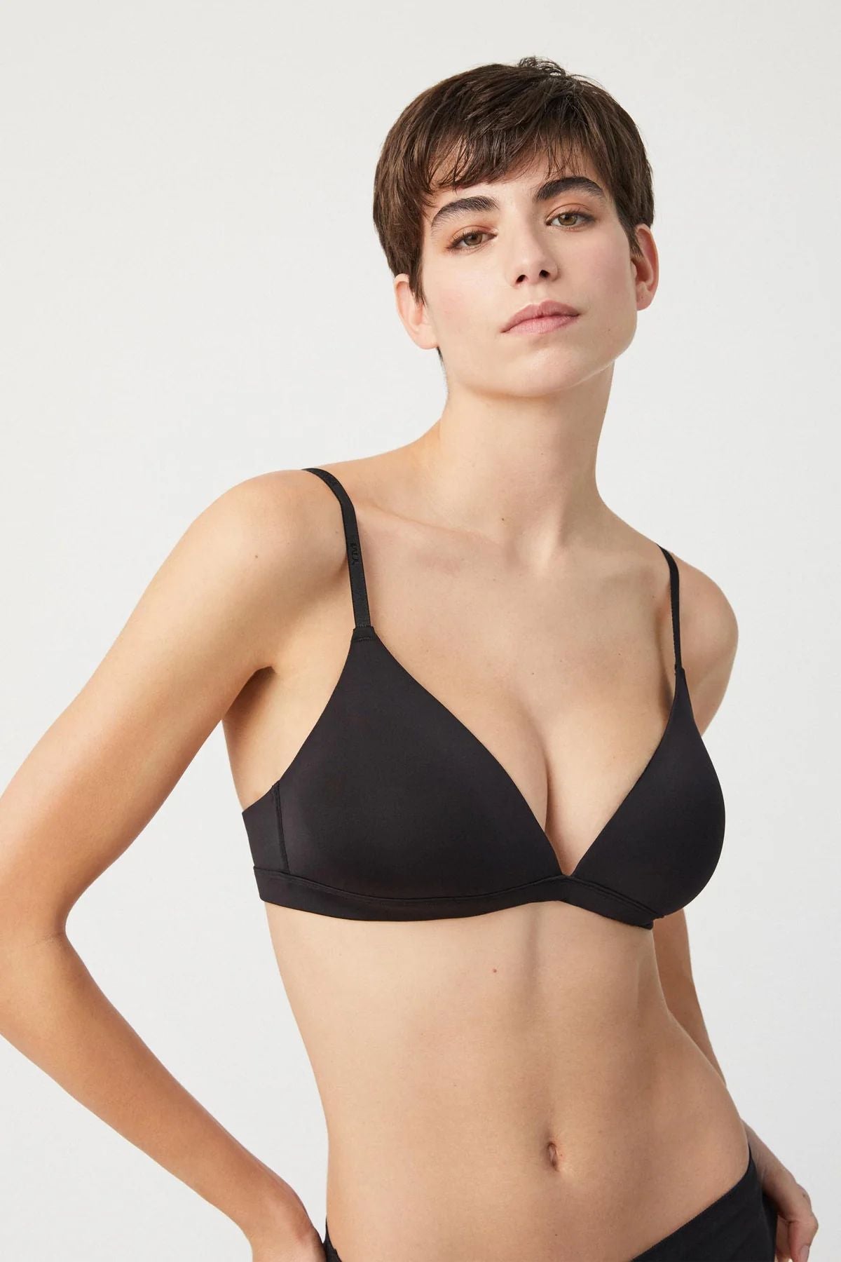 Questo reggiseno senza ferretto offre il massimo comfort senza sacrificare il supporto. Il design del triangolo permette una vestibilità perfetta e naturale, mentre il materiale di alta qualità garantisce una sensazione di leggerezza e libertà di movimento. Ideale per chi cerca un reggiseno discreto ma efficace.